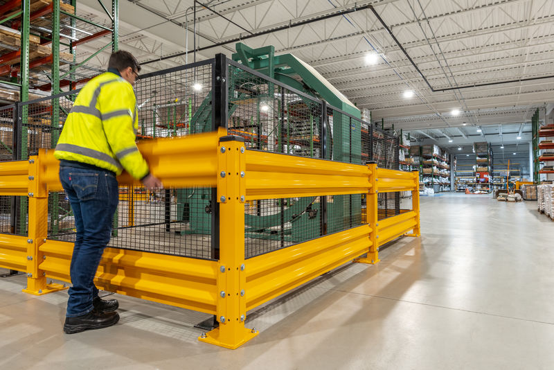 Provided a finished look for your warehouse guardrail with end flares and corner caps.